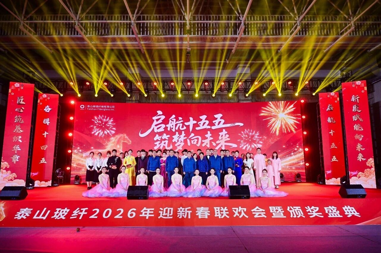 啟航十五五,筑夢(mèng)向未來。2月10日,泰山玻纖2026年迎新春聯(lián)歡會(huì)暨頒獎(jiǎng)盛典在泰安總部熱鬧上演。泰山玻纖黨委書記、董事長(zhǎng)呼躍武,黨委副書記、總經(jīng)理劉利鋒等在家領(lǐng)導(dǎo)班子...